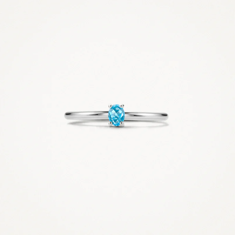 BLUSH – Bague avec topaze bleue ovale en or blanc