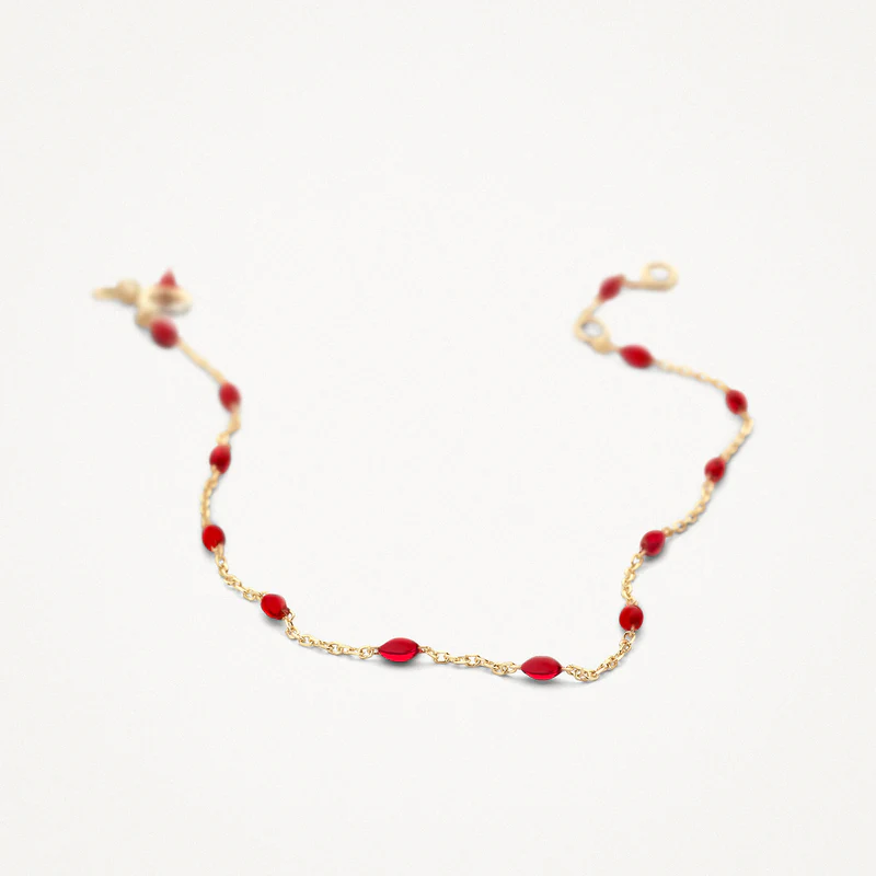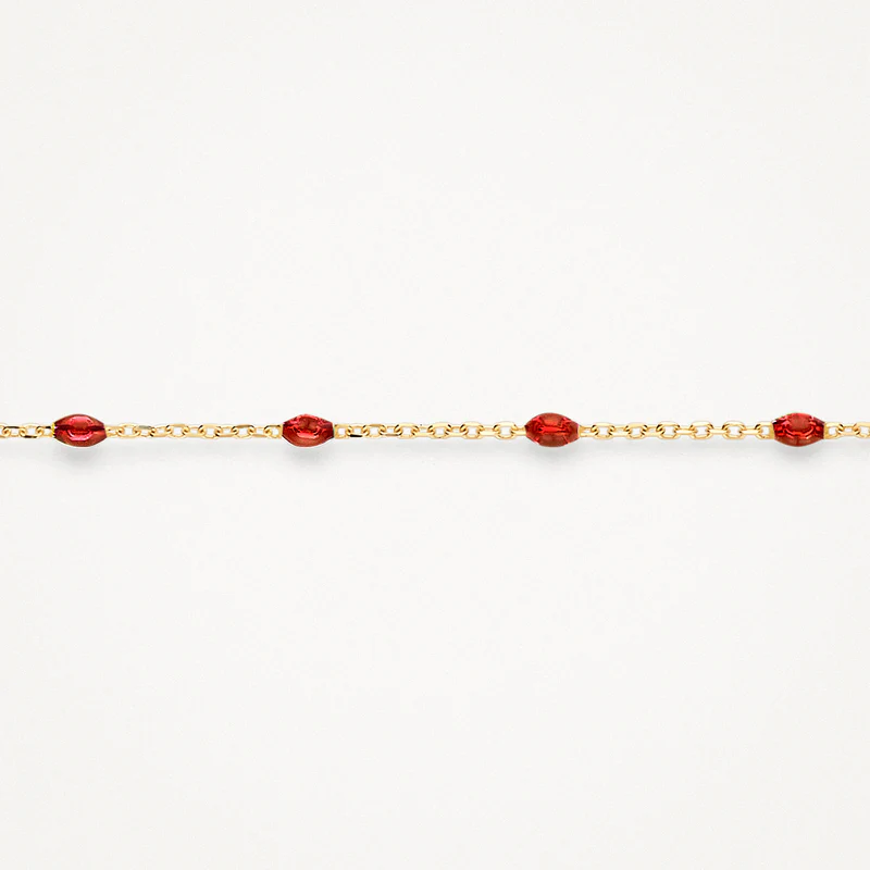 Les pierres en résine rouge confèrent à ce bracelet en or jaune 14k une touche chaleureuse et remarquable, avec sa fine maille ancre (⌀ 0.7 mm).