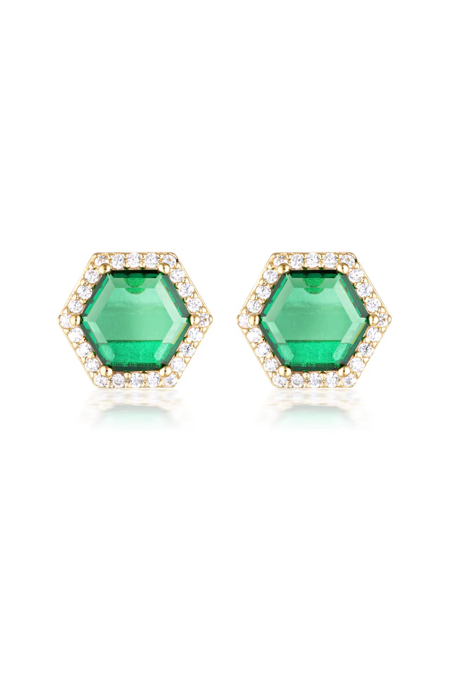 Au centre de ce bijou contemporain se trouve un hexagone en zircon cubique taillé.