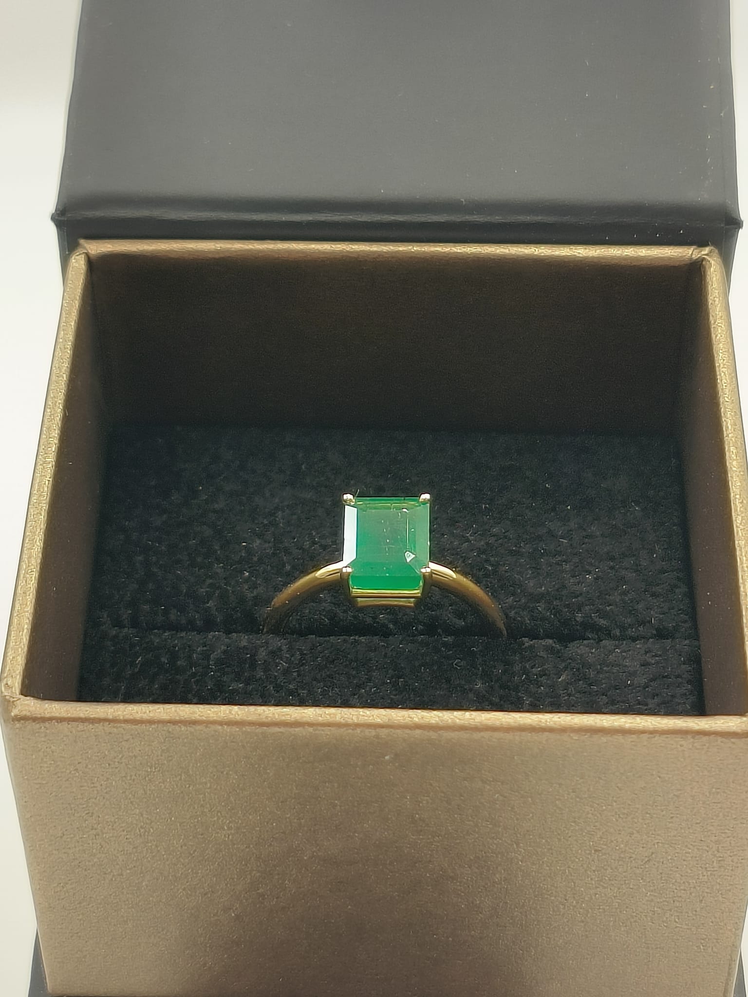 En or jaune18ct, serti de 1 émeraude véritable de forme rectangulaire.